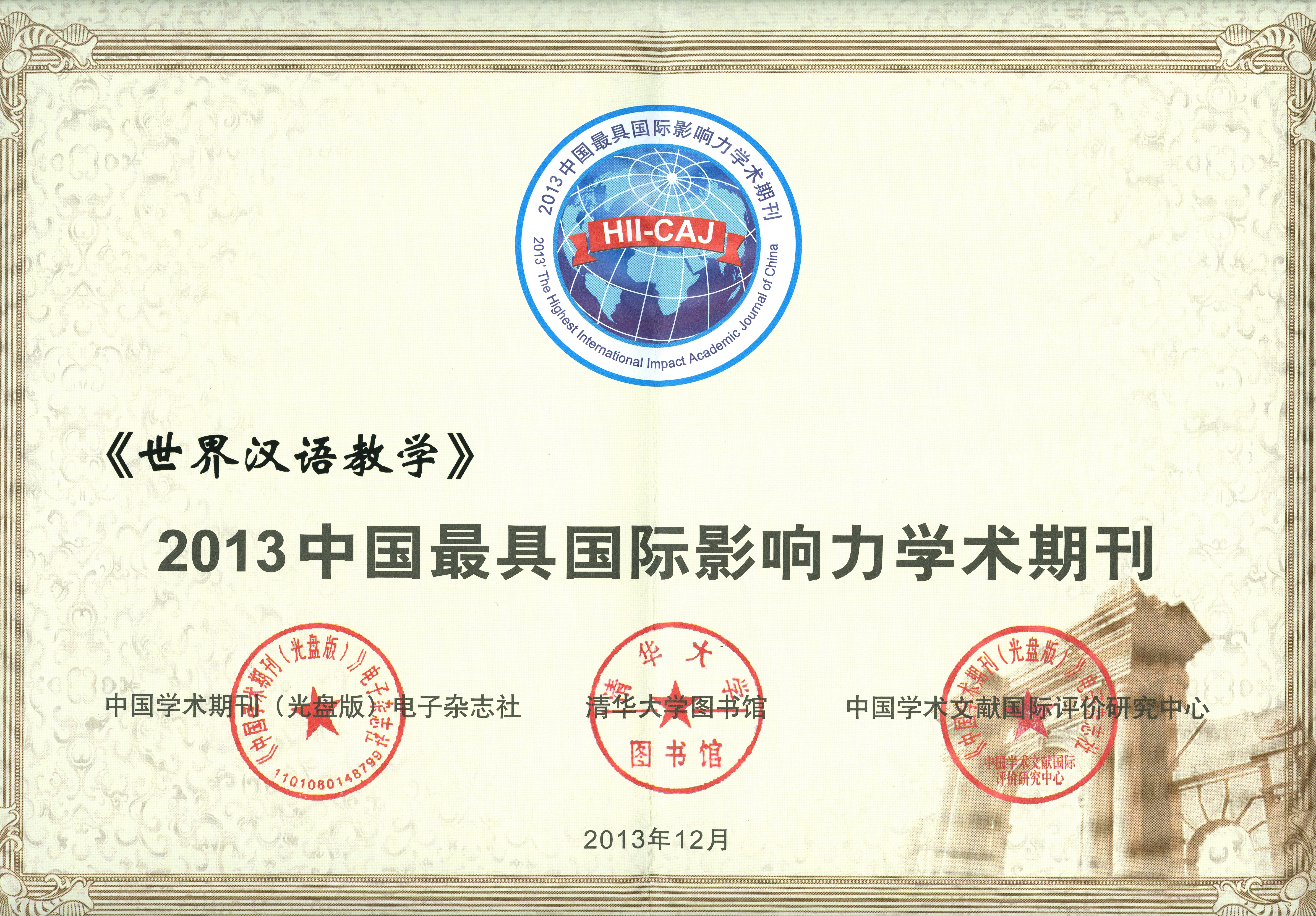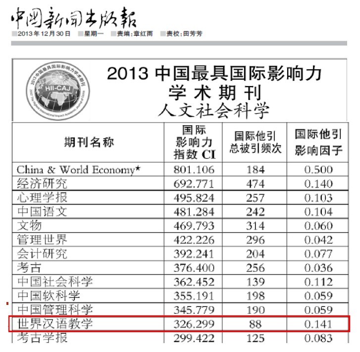 《世界汉语教学》入选“2013 中国最具国际影响力学术期刊”链接